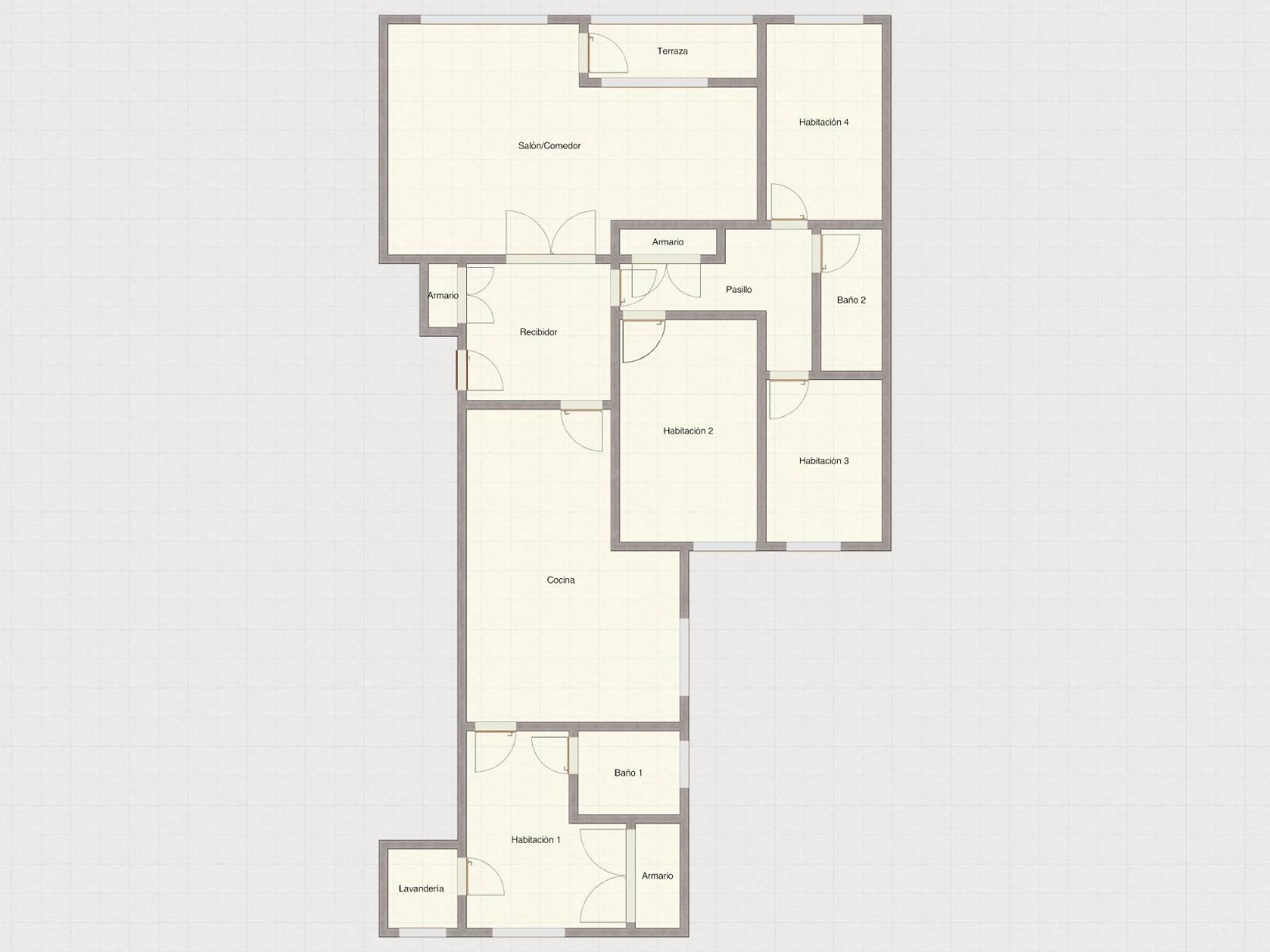 La distribución permite reorganizar fácilmente los espacios para disponer de hasta 4 dormitorios, eliminando el despacho y la salita si se prefiere priorizar las habitaciones.