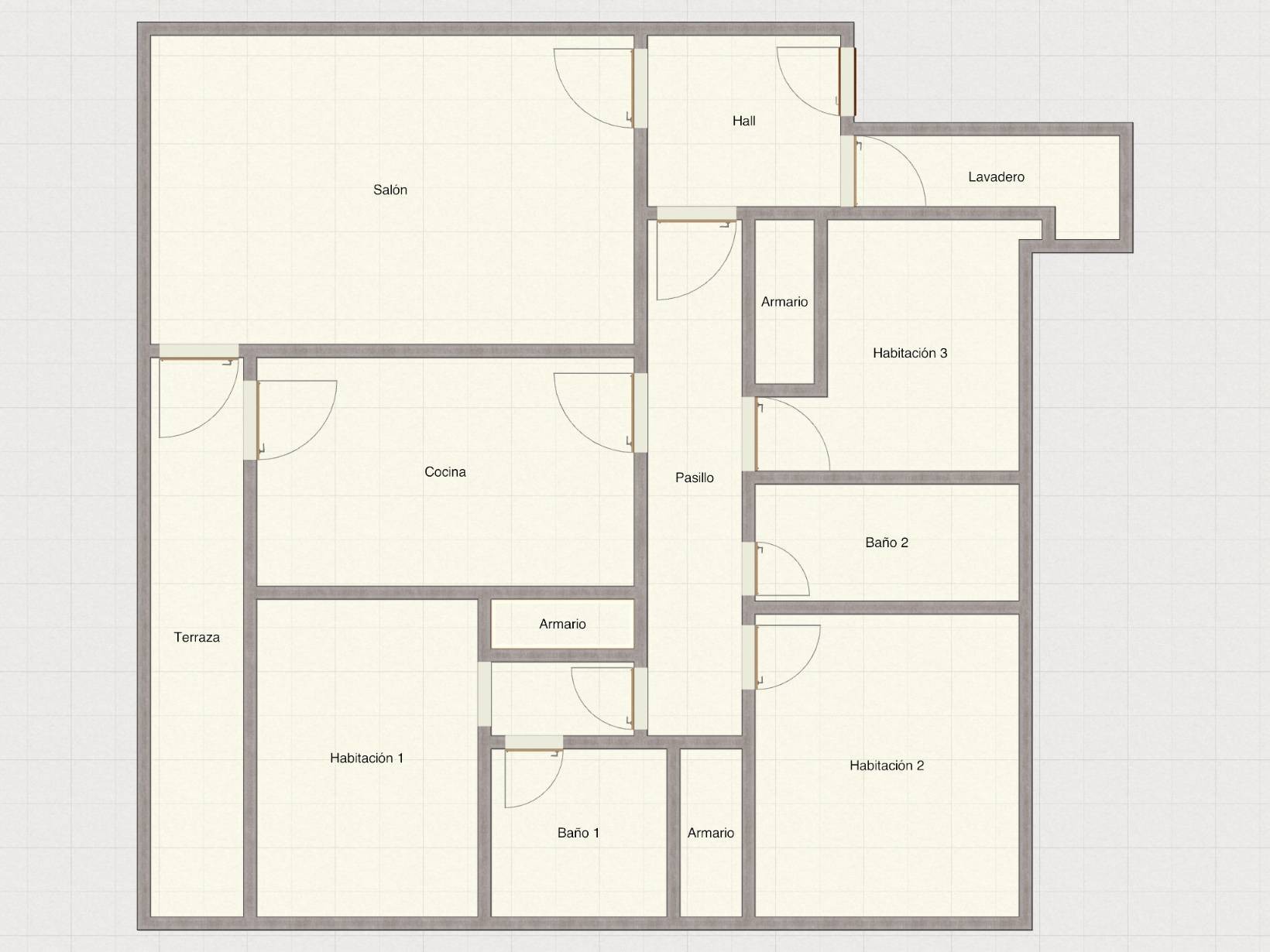 - Puertas: madera barnizada.