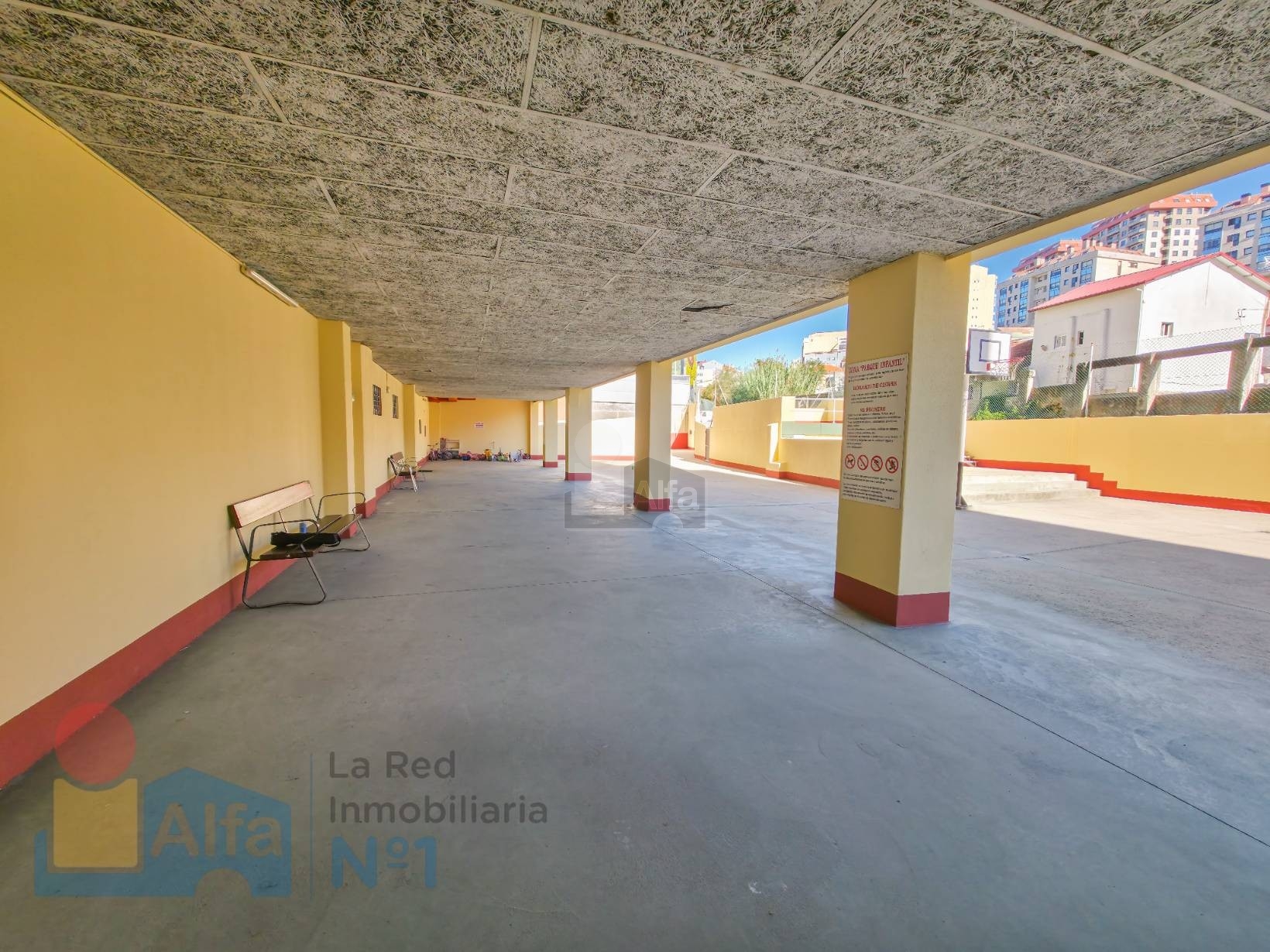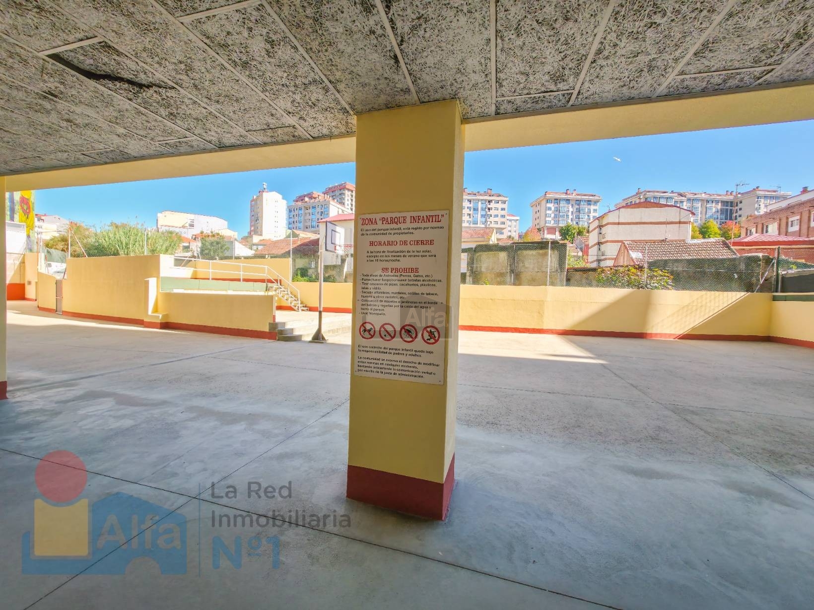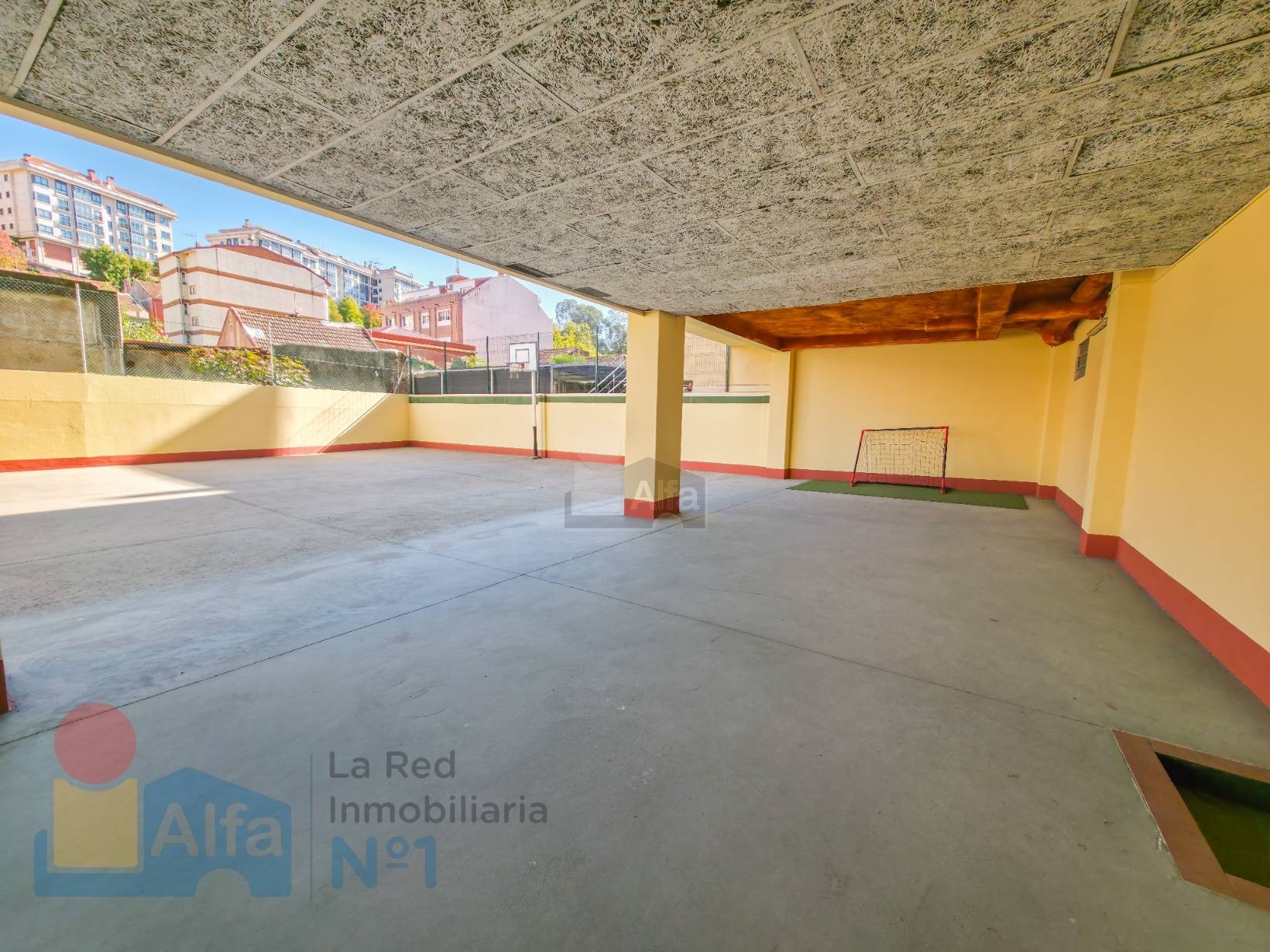 Uno de los grandes atractivos de esta propiedad es su amplia zona común, compartida con el edificio colindante, que dispone de canastas de baloncesto y portería de fútbol: un espacio pensado para el disfrute de los más pequeños. Desde la terraza del piso se puede supervisar cómodamente a los niños mientras juegan, lo que convierte este entorno en un valor añadido para familias.